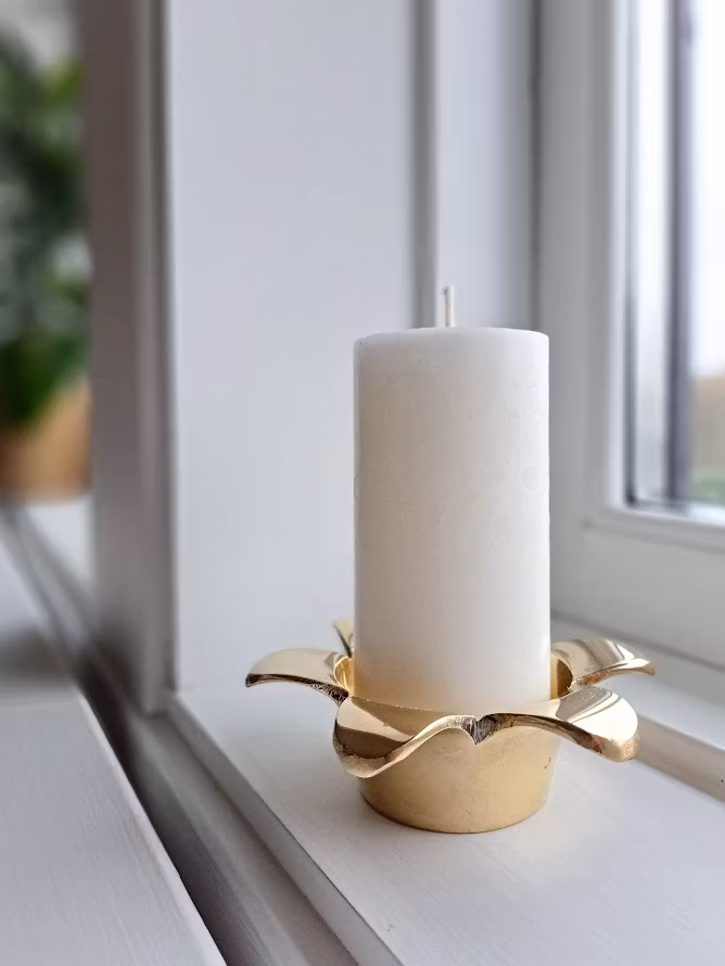 Mått H ca 3,5cm Dia ca 10,5cm (Bottenplatta Ø ca 4,5cm) Passande till ljus med Ø ca 4,5cm