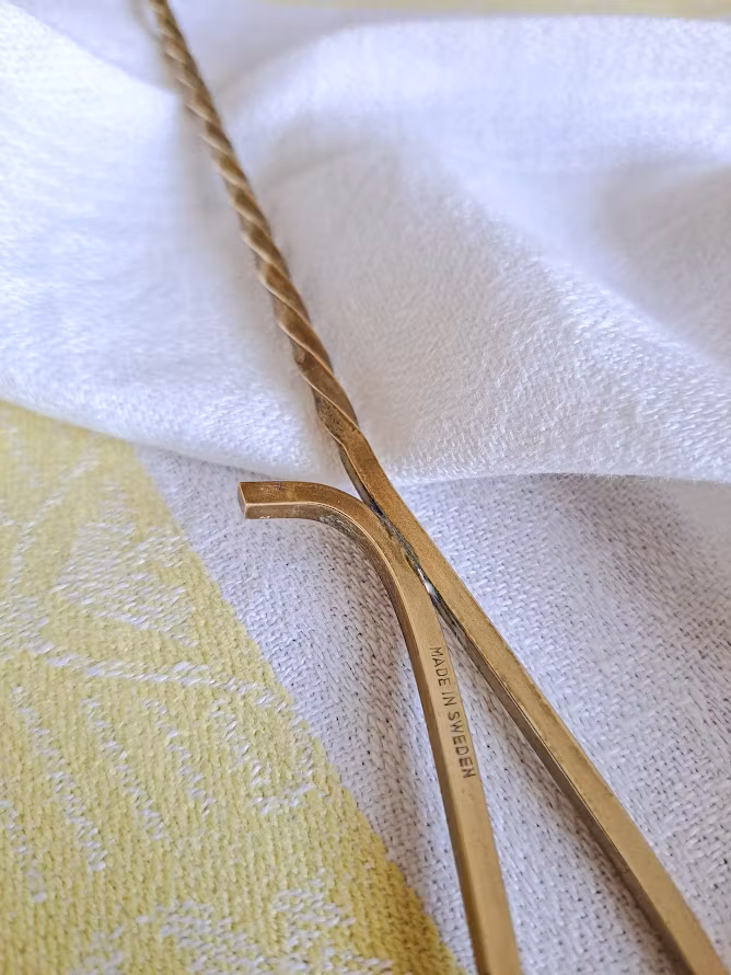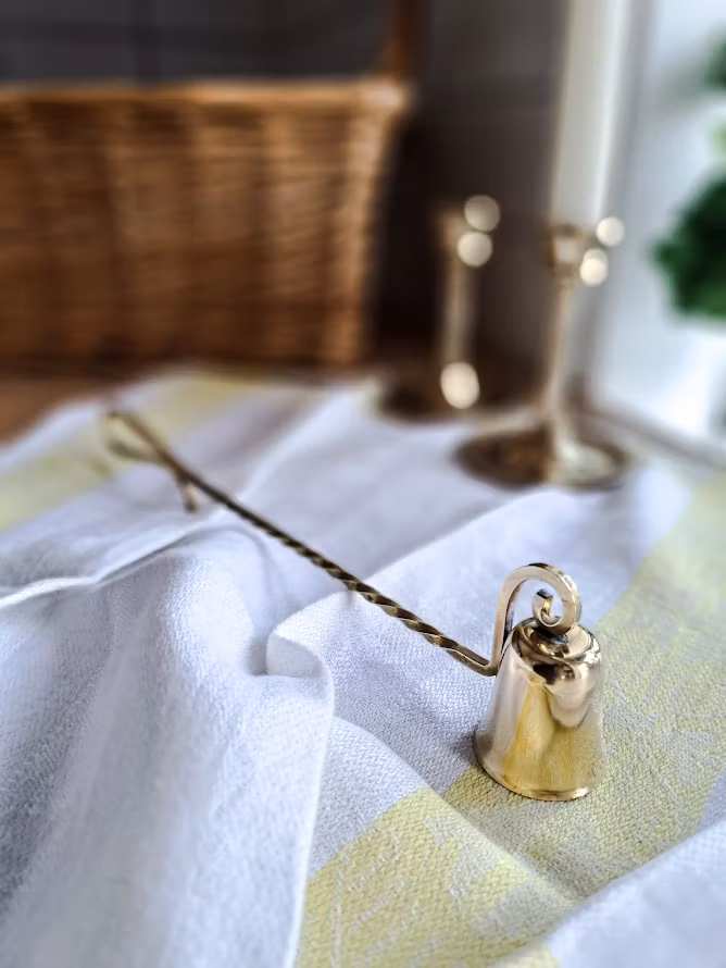 Äldre ljussläckare i mässing med vridet skaft. Bruksskick.