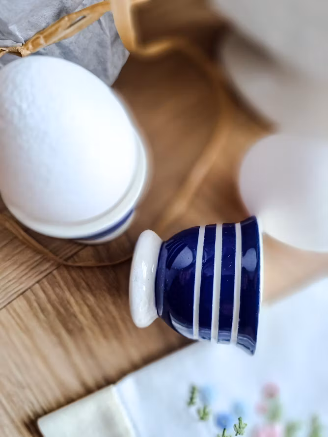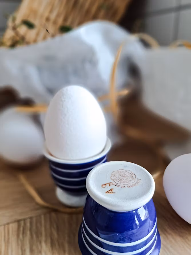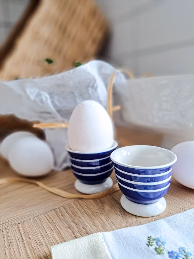 Äldre klassiska äggkoppar i stengods. Levereras om 2 styck äggkoppar. I mycket väl bevarat bruksskick.
