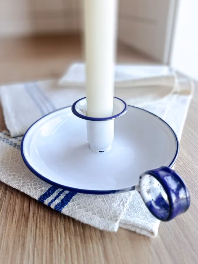 Ljusstake i emalj 149 kr Lägg i korgen Dela Information Charmig äldre ljusstake i emalj med en ögla som handtag. Bruksskick.Märkt SwedenMått Dia ca 13cm