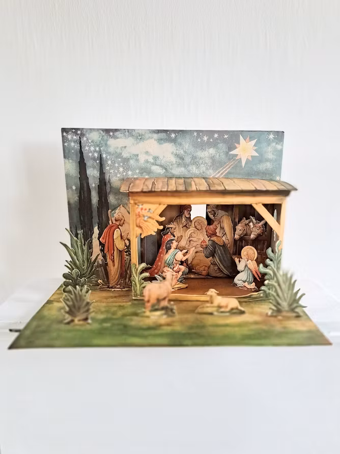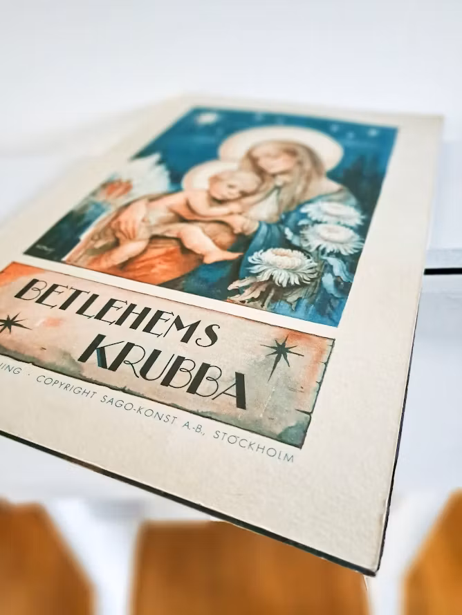 Betlehems krubba av H. Artelius 149 kr Produkten är tyvärr slut i lager. :( Dela Information Charmig krubba i kraftigt papp från 1940-talet. Av bildkonstnär Helge Artelius. I mycket väl bevarat bruksskick. Mått ca 23x34,5cm (ihopvikt)