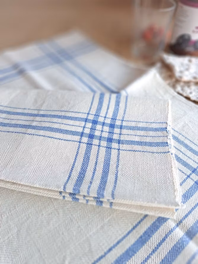 Kökshanddukar, 2 styck 125 kr Produkten är tyvärr slut i lager. :( Dela Information Äldre kökshandduk med klassiska ränder i blått. Utan hank. Smärre färgskiftningar i den vävda textiliern. Levereras om 2 styck kökshanddukar.Mått ca 51x64cm
